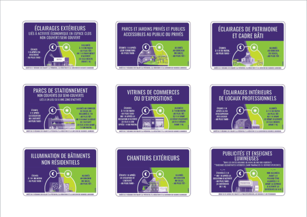 Enfin, la loi du 8 août 2016 pour la reconquête de la biodiversité, de la nature et des paysages intègre la notion de paysage et environnement nocturnes, avant que l’arrêté ministériel du 27 décembre 2018 relatif à la prévention, à la réduction et à la limitation des nuisances lumineuses n’établisse un cadre réglementaire strict sur les dispositifs lumineux (orientation, intensité, température de couleur, etc.).
