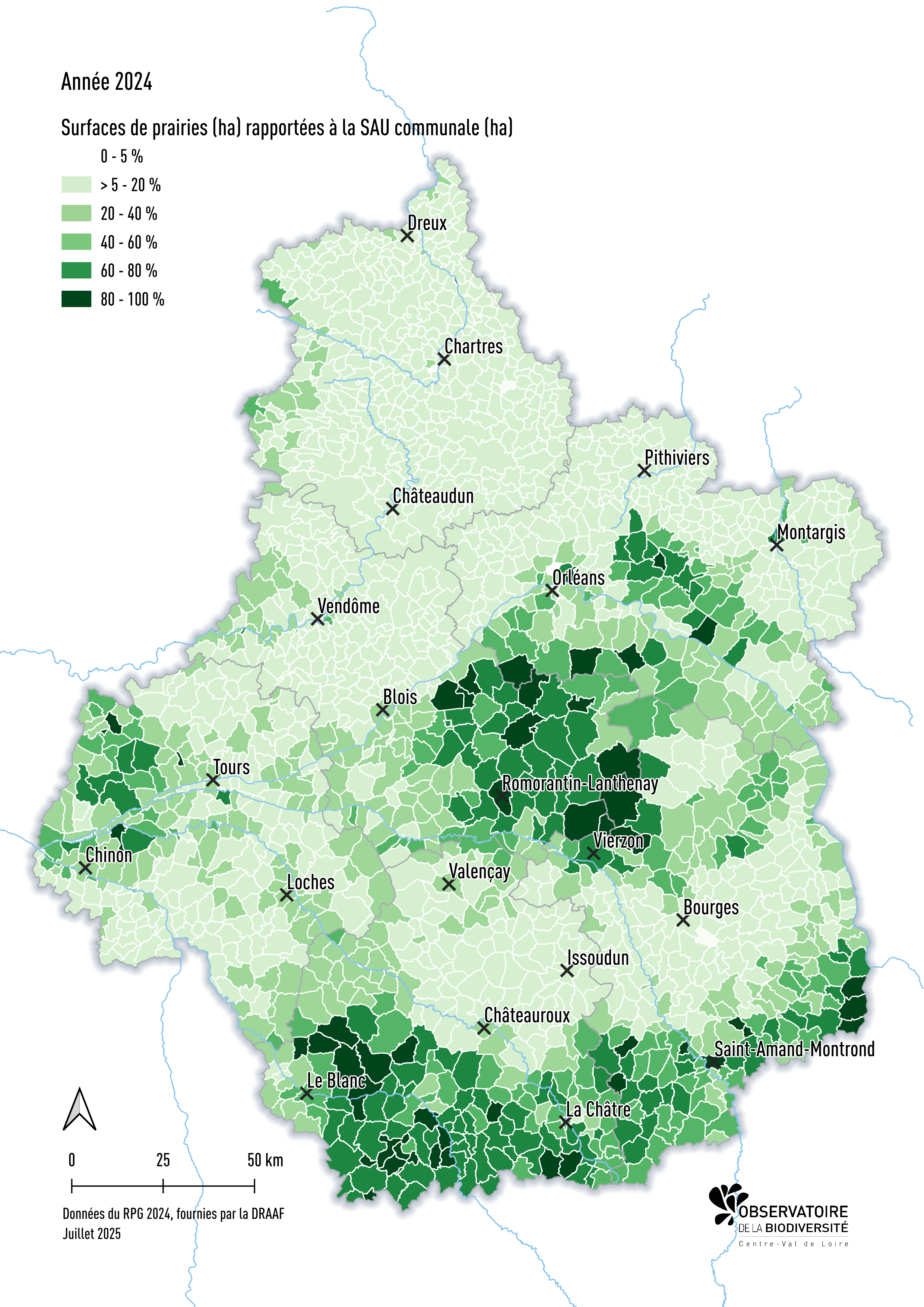 Les données utilisées sont issues de la statistique agricole annuelle et fournies par la DRAAF Centre-Val de Loire. L'export date d'octobre 2025.