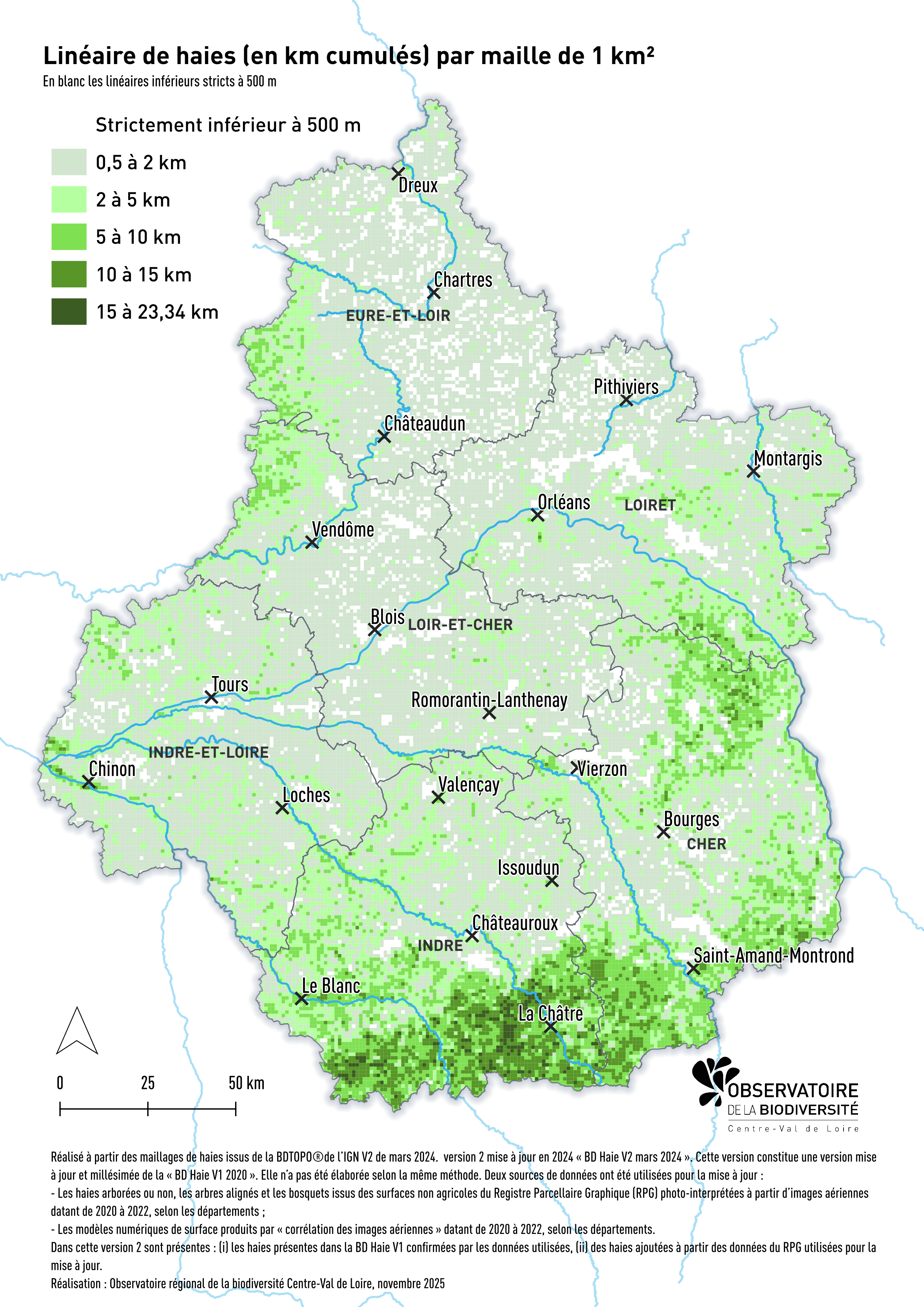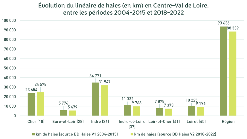 Le Centre-Val de Loire perd ainsi 5 300 km de haies entre les deux périodes.