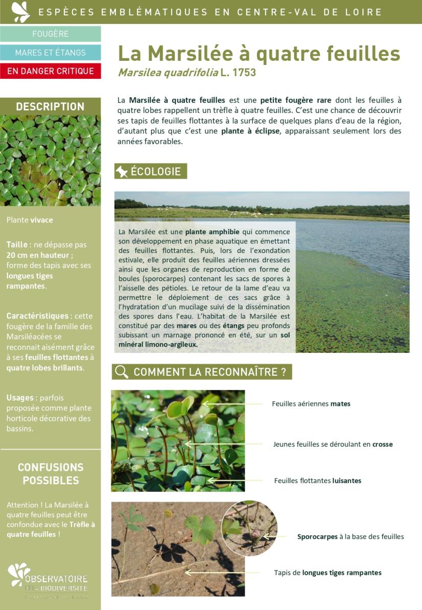 Pour tout connaitre sur la Marsilée à quatre feuilles et sa situation en Centre-Val de Loire